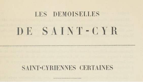 References et anecdotes (demoiselle de St Cyr,..)
