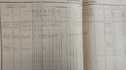 Dans les années 1920, un recensement des véhicules à moteur à Nangeville a été réalisé, probablement pour l’usage des armées. Il est déposé aux archives départementales d’Orléans (voir les 3 photos).