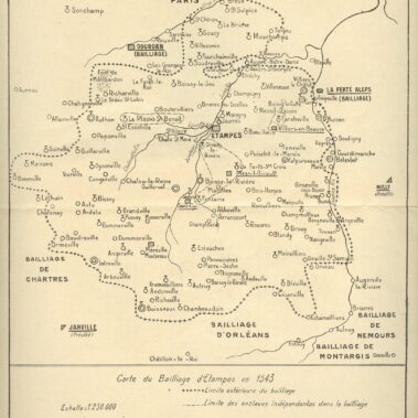 PHOTO CI-DESSOUS : Carte du baillage d’Etampes en 1543 (source Médiathèque d’Orléans)
