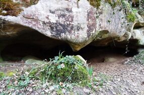 La grotte de Prinvaux est située sur le territoire de la commune de Boigneville, entre la source de la rivière Velvette et le hameau de Prinvaux, a une distance de Nangeville a peine superieure a un kilomètre, à flanc de colline, à proximité d’autres grottes . L’entrée de la grotte fait seulement 70 cm de hauteur, puis la cavité s’élargit. La grotte a une profondeur d’environ 7 m. Les signes gravés sur les parois de la grotte semblent rudimentaires et stéréotypés. Très souvent, ils constituent un quadrillage, motif emblématique de l’art rupestre de Fontainebleau. On trouve aussi un grand nombre de sillons simples, isolés, groupés par paire ou en faisceaux de droites parallèles, ou encore entrecroisés. Figurent également des trous isolés ou en séries -, et des motifs plus élaborés telles les triples enceintes. S’ajoutent à ce répertoire schématique des motifs plus ou moins figuratifs qui évoquent des haches, des rouelles, des lances ou des chevrons, des échelles, des arbres, et de rares animaux et humains. Les gravures sont datées par leur style du Mésolithique, période qui s’étend de 9700 à 5000 av. J.-C, donc avant le Néolithique (Source : Wikipedia – extraits).