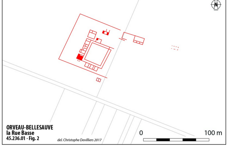 Parmi les nombreuses fermes gallo-romaines situee sur le territoire de Nangeville et des environs, identifiees grace a la photographie aerienne, plusieurs sont d’une taille tres importante (dites de “rang 1) avec des batiments se deployant sur 100 metres ou plus. Les plans ci-dessous (extraits du site de l’AERBA) presentent les plus importantes fermes-villas : Orveau-Bellesauve…