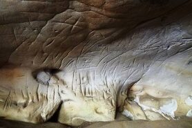La grotte de Prinvaux est située sur le territoire de la commune de Boigneville, entre la source de la rivière Velvette et le hameau de Prinvaux, a une distance de Nangeville a peine superieure a un kilomètre, à flanc de colline, à proximité d’autres grottes . L’entrée de la grotte fait seulement 70 cm de hauteur, puis la cavité s’élargit. La grotte a une profondeur d’environ 7 m. Les signes gravés sur les parois de la grotte semblent rudimentaires et stéréotypés. Très souvent, ils constituent un quadrillage, motif emblématique de l’art rupestre de Fontainebleau. On trouve aussi un grand nombre de sillons simples, isolés, groupés par paire ou en faisceaux de droites parallèles, ou encore entrecroisés. Figurent également des trous isolés ou en séries -, et des motifs plus élaborés telles les triples enceintes. S’ajoutent à ce répertoire schématique des motifs plus ou moins figuratifs qui évoquent des haches, des rouelles, des lances ou des chevrons, des échelles, des arbres, et de rares animaux et humains. Les gravures sont datées par leur style du Mésolithique, période qui s’étend de 9700 à 5000 av. J.-C, donc avant le Néolithique (Source : Wikipedia – extraits).