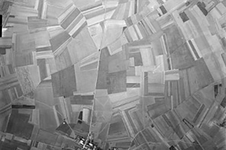 Cette photo aérienne du territoire de Nangeville est la seule dont on dispose, qui précède le remembrement du début des années 1950. Elle permet de visualiser les chemins qui existaient précédemment et les parcelles, qui semblent avoir peu évolué depuis le cadastre napoléonien de 1835 (analyse à faire). Detail