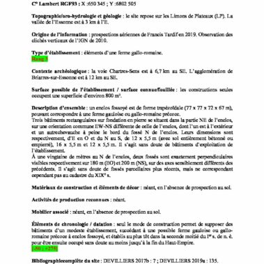 Les 17 sites identifiés à Nangeville et ses limites sont les suivants (la description de certains est accessible sur le site AERBA « http://aerba.huma-num.fr ») :