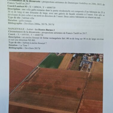 Pas moins de 17 sites gaulois et gallo-romains, et sans doute plus anciens pour certains, ont été repérés ces 25 dernières années grâce à la photographie aérienne, sur le territoire de Nangeville ou à ses frontières immédiates.