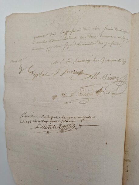 - L’acte du notaire de Nangeville, maitre Boudard, en 1743 (Source : Archives du departement du Loiret)