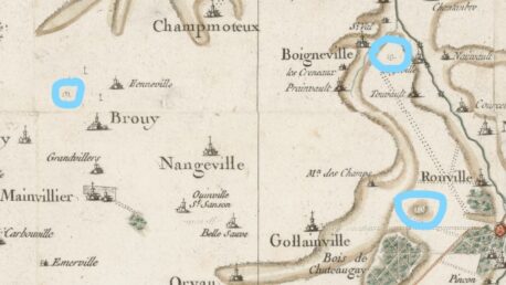 En analysant la carte de Cassini etablie au milieu du XVIIIe siecle on voit qu’il existait trois fourches patibulaires dans les environs immediats de Nangeville : a Brouy, entre Gollainville et Malesherbes et a Boigneville. Tous semble-t-il sur des hauteurs, bien visibles a l’epoque.