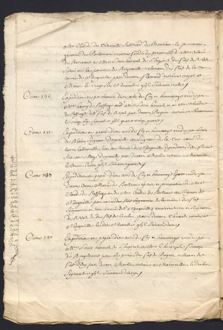 - Foi et hommage de Francois Duvaur, procureur de Claude Cabutin qui est curateur de la succession de Jacques de Cothereau, pour les fiefs de la Tour Ronde, Hauteborne (?) et Puigast, a Nangeville (1665 ?)