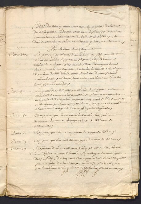 Un etat notarial de mars 1711, etabli apres le deces de Louis Hurault de L’Hopital, conserve aux Archives Nationales, presente une liste des pieces sur ses biens ou droits (foi et hommage), notamment a Nangeville (voir les photos de cet etat):