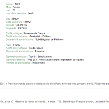 Voici l’une d’entre elles : en février 1709, durant le « grand hiver » un groupe de paysans armes arrête à Brouy un transport de blé vers Paris et pille le grain.