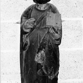 Plusieurs belles statues en bois sont conservées à l’église : St Martin à cheval (XVIe siècle), un évêque (XVIe siècle), un docteur de l’eglise (XVIIIe siècle) et un Christ en croix (source des photos : site culture.fr)