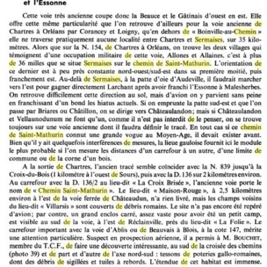 Dans son livre de 1970 sur l’Archéologie Aérienne en Ile de France, Daniel Jalmain semble indiquer que le chemin de Saint Mathurin allait directement de Sermaises à Malesherbes (empruntant donc la branche nord de la patte d’oie d’Audeville), et que cela serait visible d’avion. Si c’est le cas, il passerait donc par Oinville, en lisière de Nangeville. Cela est à confirmer.